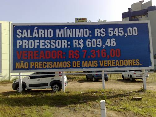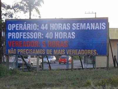 O outdoor colocado na Rua Olívio Domingos Brugnago, no bairro Vila Nova, em Jaraguá, demonstra a indignação sobre a proposta de aumento do número de vereadores na Câmara.